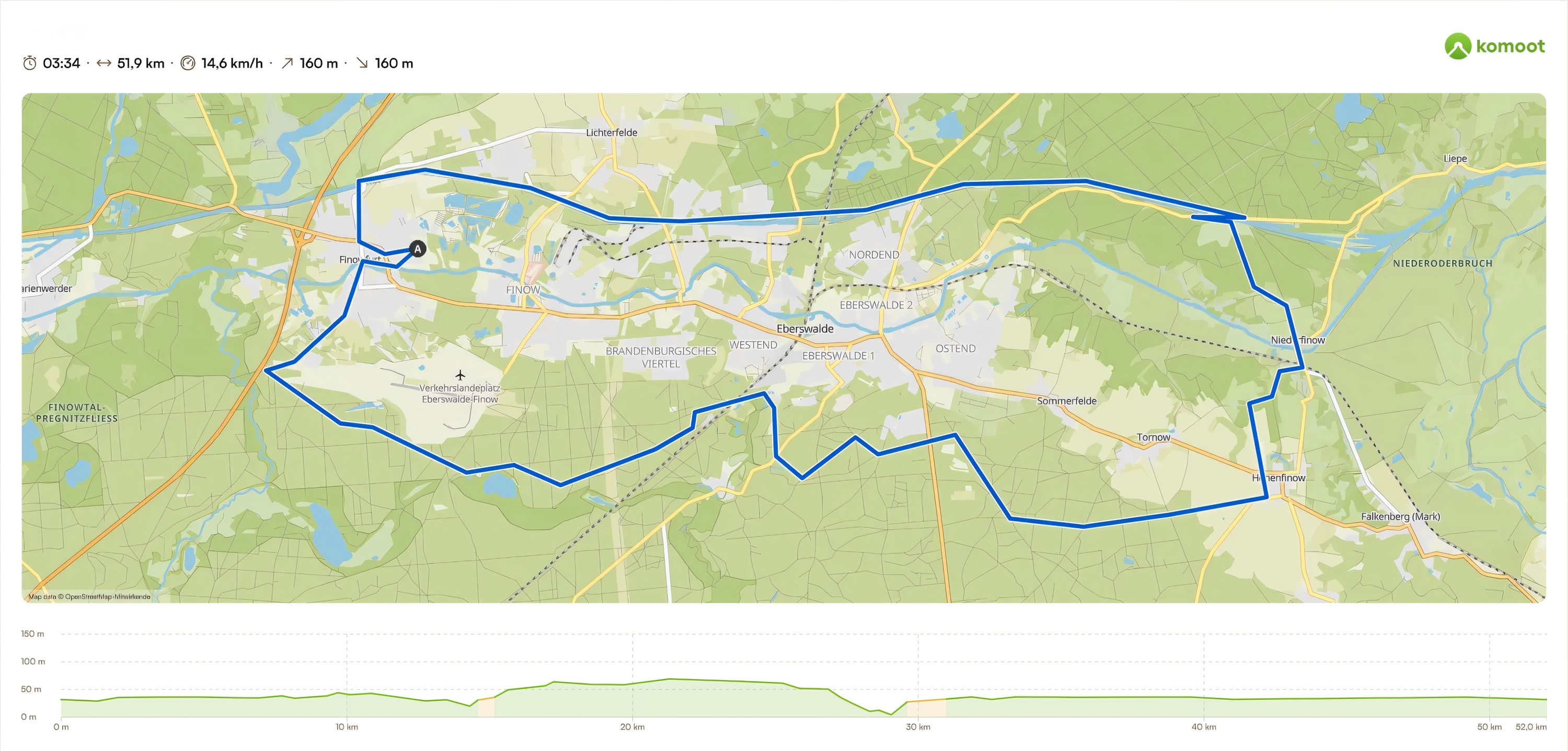 Start und Ziel der Newbie Tour ist der CUBE Store Barnim in Finowfurt. Von hier aus geht es auf die rund 51 Kilometer lange Runde rund um Eberswalde – durch Wälder, über Wiesen, vorbei an Seen und Kanälen.